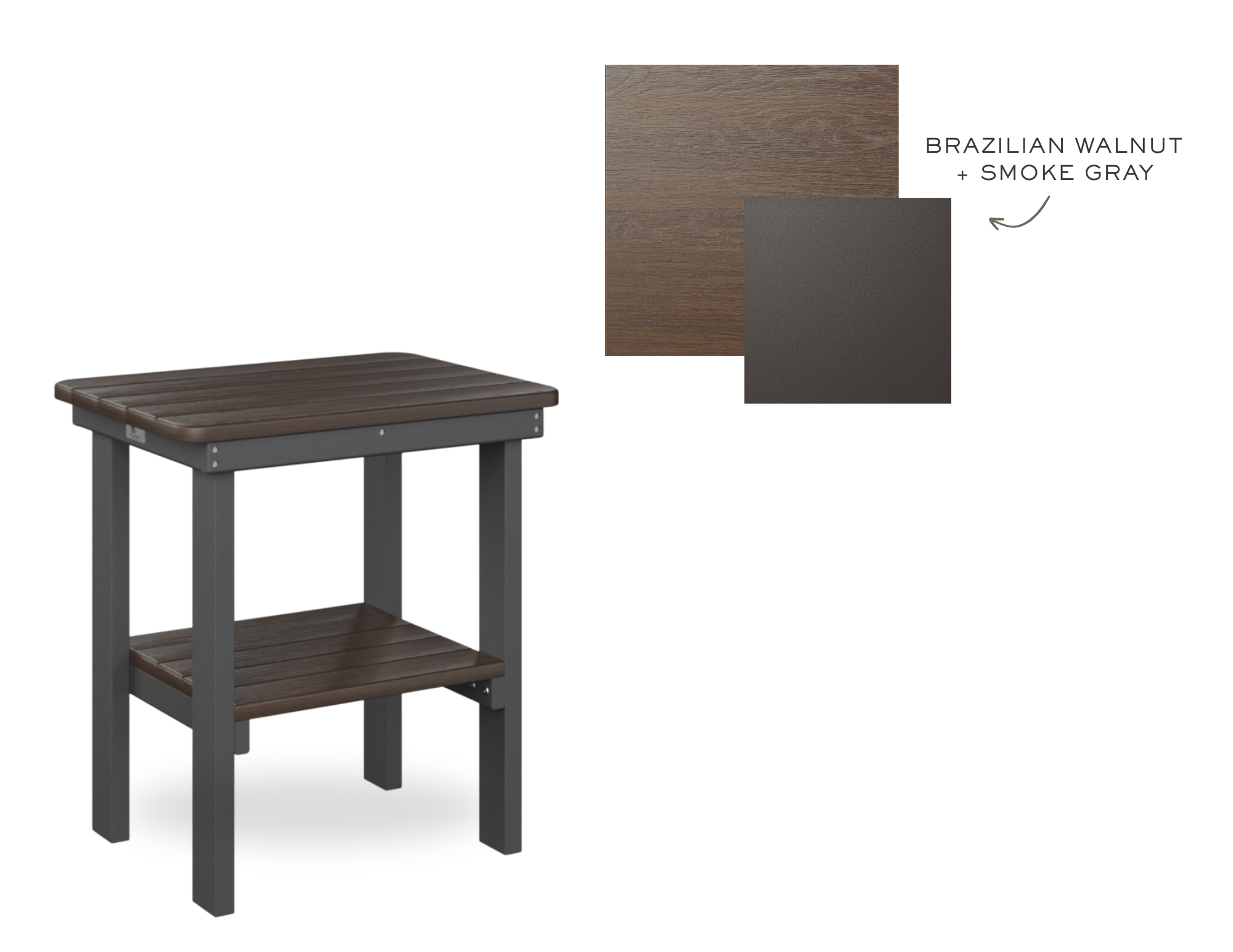This all-weather end table is designed to complement our upright Adirondack chairs, offering the perfect dining height for cozy meals and evening drinks.